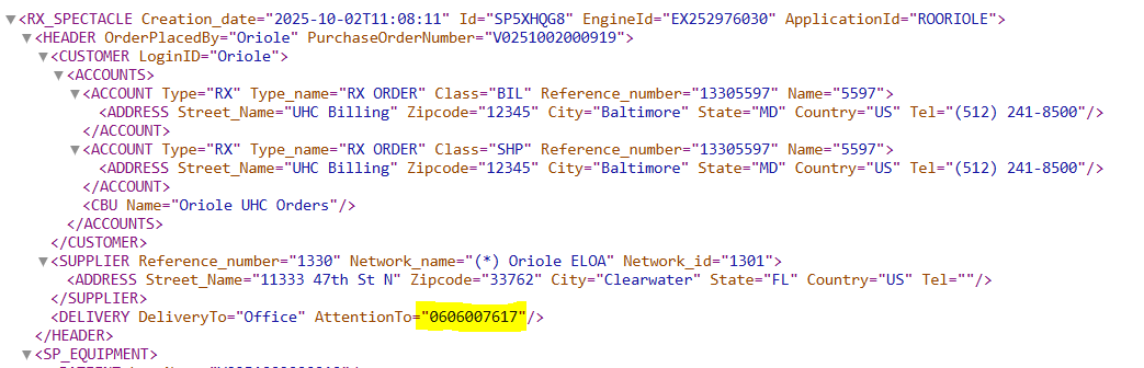 Make sure to include the number listed on the order XML in the "Attention To" field. This is the actual account number listed for the order.